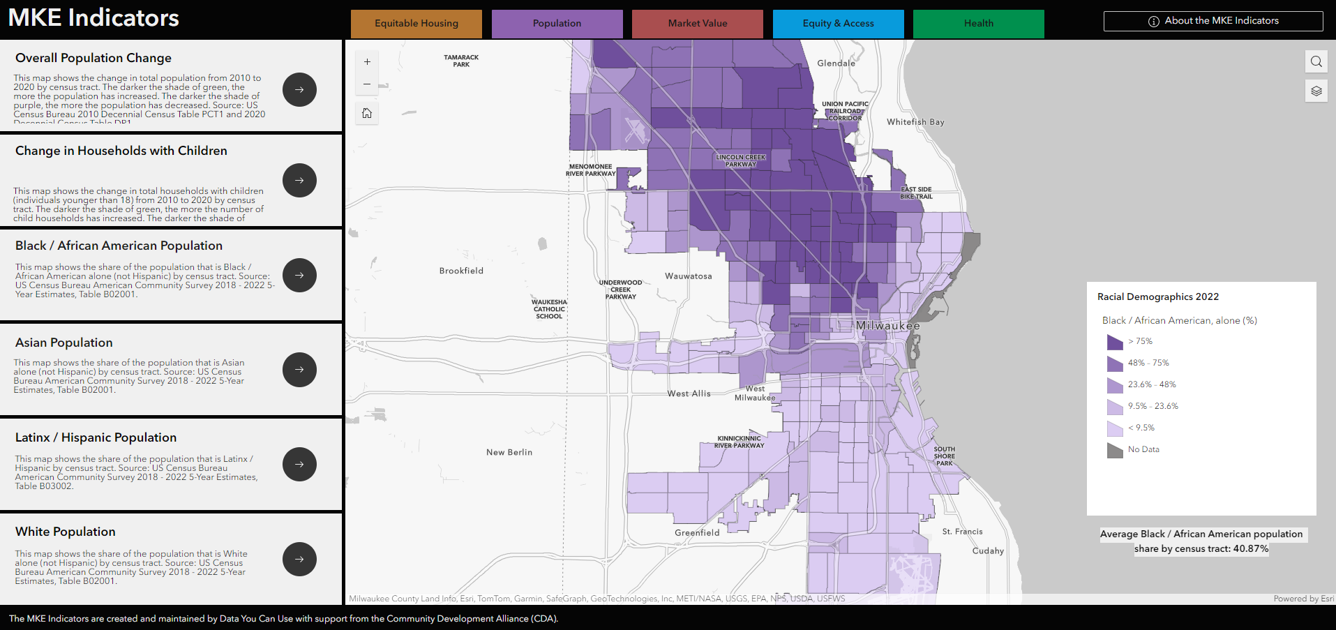 Explore interactive data maps for the City of Milwaukee designed to bring key information to community members, planners, policy makers, and neighborhood organizations across the city.