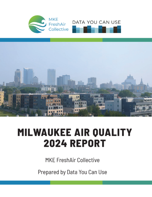 In 2024, Data You Can Use partnered with the MKE FreshAir Collective to analyze and visualize the data they collected through their air quality sensors. The mission of MKE FreshAir Collective is to provide accurate, timely information about air quality in Milwaukee to residents, businesses, and policymakers, with a steadfast commitment to equity and addressing systemic racism. They use state-of-the-art, consumer accessible equipment to monitor air quality in real-time. Our 2024 report analyzes trends in air quality at a neighborhood level, utilizing the data from MKE FreshAir Collective’s air quality sensors.